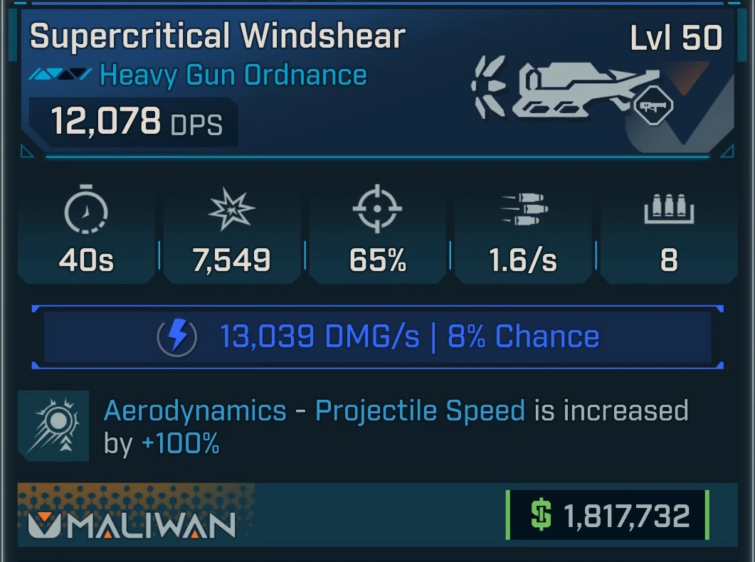- Aerodynamics – Projectile Speed is increased by +100%.